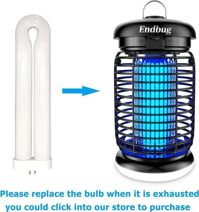 EFFICIENT ELECTRIC FLY TRAPEndbug mosquito trap effectively controls insects over 1500 sq ft, it uses a replaceable 15W bulb to spread purple light wave and microthermal effect that attracts insects effectively, then electrocutes them by 4200V high-voltage grid, can efficiently eliminate mosquito, gnats, Aedes, flies, moths and other flying insects.
