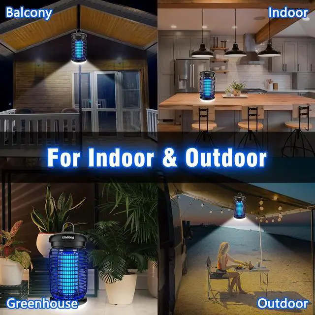 IPX5 WATERPROOF: Designed with IPX5 grade waterproof, Endbug electric bug zapper is resistant to harsh weather conditions, ensuring longevity. With a hanging hook, it can be used in various locations, including home, balcony, patio, garden, porch, courtyard, farm, office, swimming pool, garage, pergola and more.