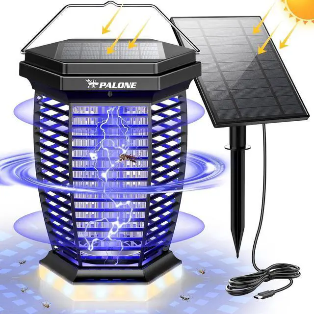Safe and Effective Electric ShockPALONE Solar Bug Zapper attracts mosquitoes by ultraviolet light at 365-395nm, and releases 4500V high voltage electric shock to destroys mosquitoes. Rugged ABS external net protects your children and animals from accidental contact with the power grid.