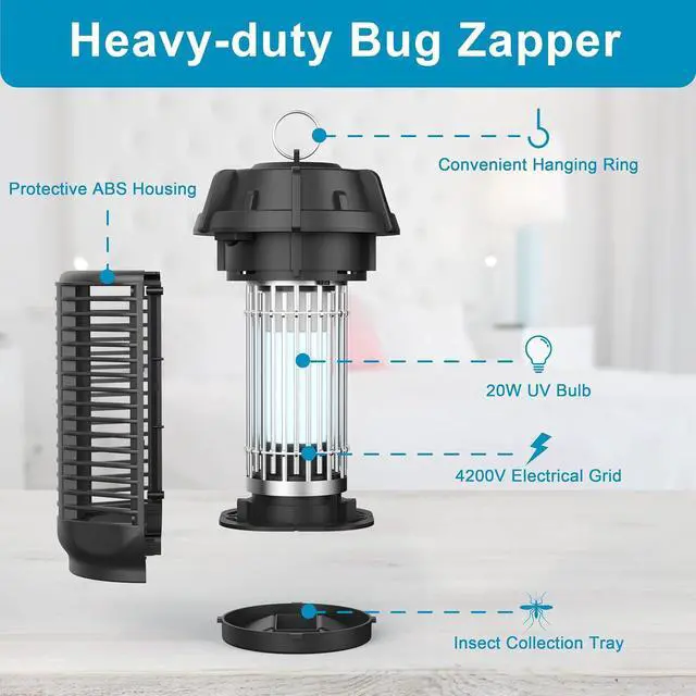 Wider range of use: this 20WBug Zapper. Perfect for home, backyard, patio, garden, porch, patio, balcony, garage, patio and more. It works better at night and in darker places.