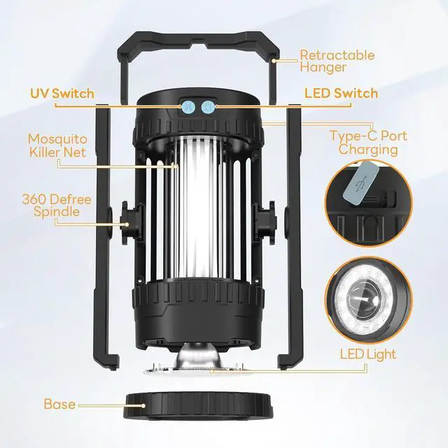 Multifunctional Outdoor Bug Zapper: The Dchyyds mosquito killer lamp features a 360° rotatable LED light and a mosquito trap lamp. Work efficiently while illuminating your surroundings. Perfect for patio parties, dinners, and more.