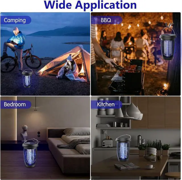 2-in-1 Bug ZapperIt can both illuminate and exterminate mosquitoes. It has two working modes. The illumination mode will emit white light to ensure you can see your surroundings clearly. The electric shock mode will emit a special light that ensures immediate pest control and a peaceful and comfortable environment for you.
