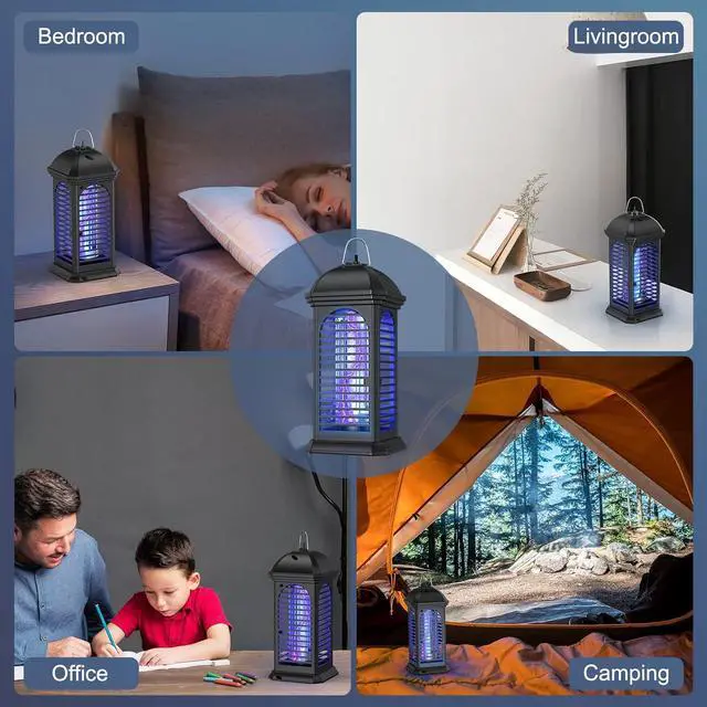 Large Area Coverage 360° UV Mosquito Zapper can effectively cover a large area of 35+m². With a metal hook on the top, the mosquito killer lamp can be hung anywhere or simply stand upright on a table, just set the Mosquito Killer Lamp at the desired position. (Note: Please store indoors during rainy days. )