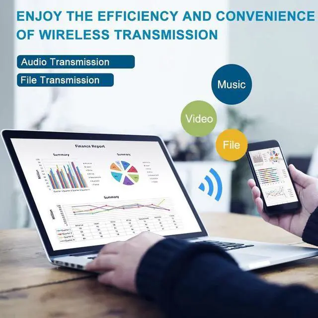 3. Fast Transmission RateThe Bluetooth USB Adapter supports the Enhanced Data Rate (EDR) technology, which greatly improves the transmission rate, giving you a fast and lag-free wireless data connection between your computer and Bluetooth devices. Easily enjoys music, transferring files, and entertainment during work