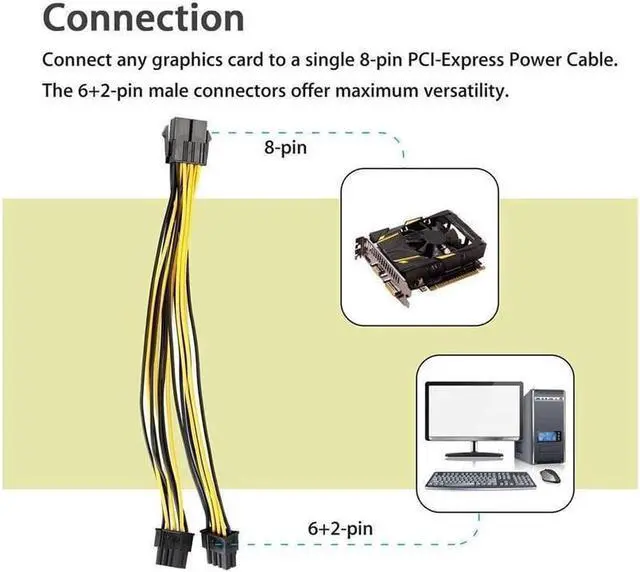 PIN ADAPTER: Connected 8 Pin power supply to 8 Pin & 6 Pin Image card. The 6+2-pin male connectors offer maximum versatility. 8 PIN to 2 X 8 (6+2)