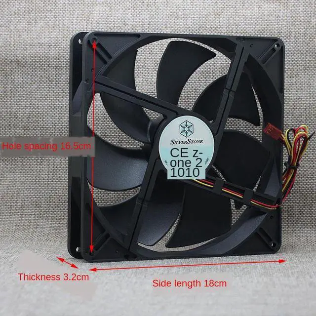: silverstonemodel: RL4Z S1803212L-3Msize: 180*180 * 32mmpitch: 165mmvoltage: 12Vcurrent: 0.15Arotational speed: 750rpmbearing Sleeveinterface: main board 3P interfacelife: 16000 hoursweight: 441.35g