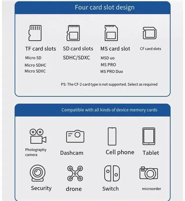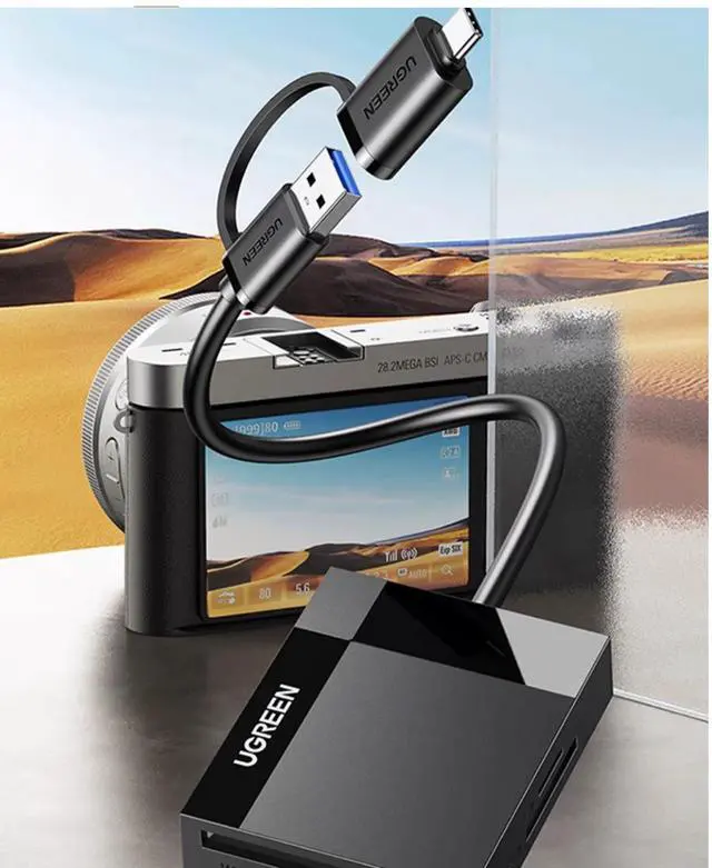 UGREEN high-speed card reader USB3.0 with Type-C interface four-in-one multi-function SD/CF/TF/MS card Multi-function Typ suitable for car otg camera memory SLR camera truck mobile phone computer 0.5