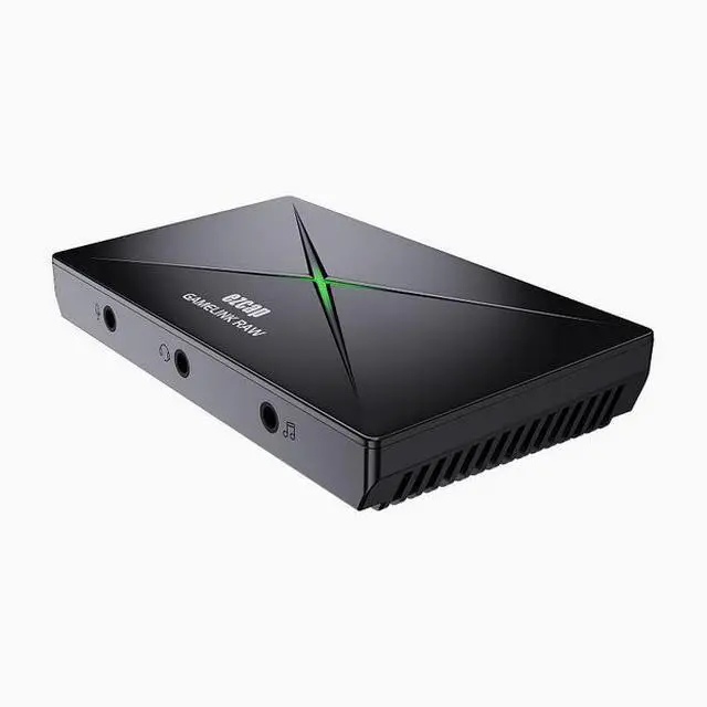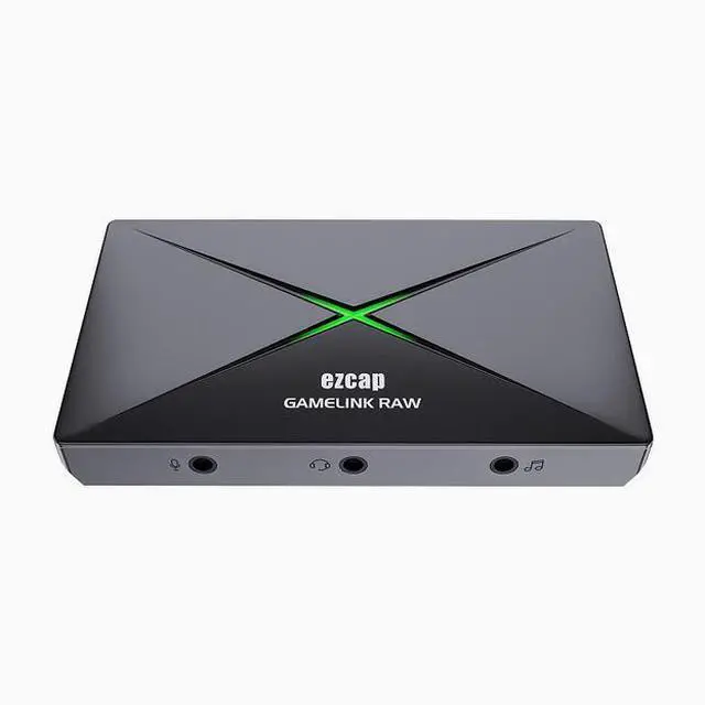 Packaging contents: ezcap333 Game Link Raw 4K Game Capture Live streaming box, USB-C to USB-A data cable, USB-A female to USB-C male adapter.