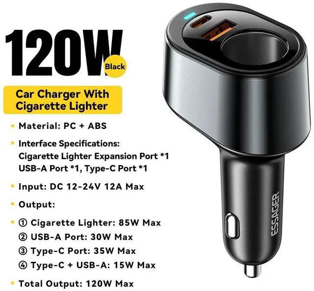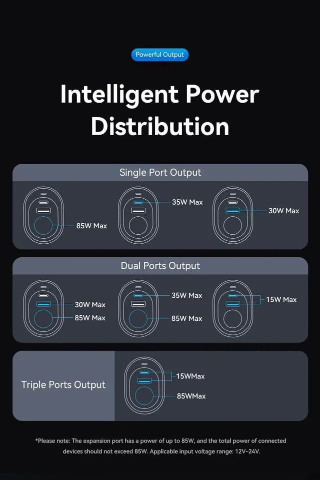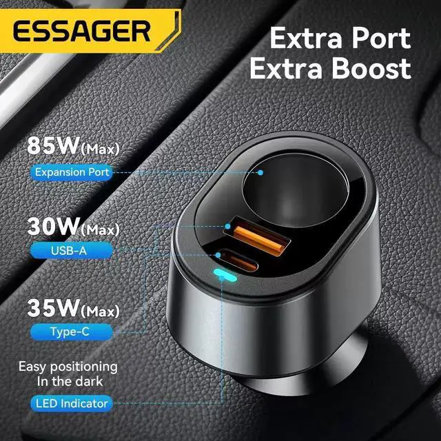 Features Type-C + USB-A + 85W expansion port, allowing you to charge multiple devices at once while keeping the 85W cigarette lighter port free for other accessories.