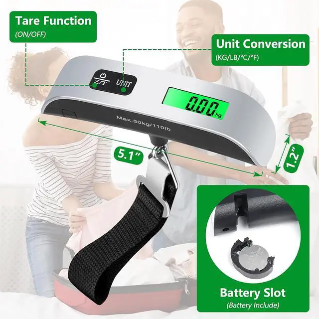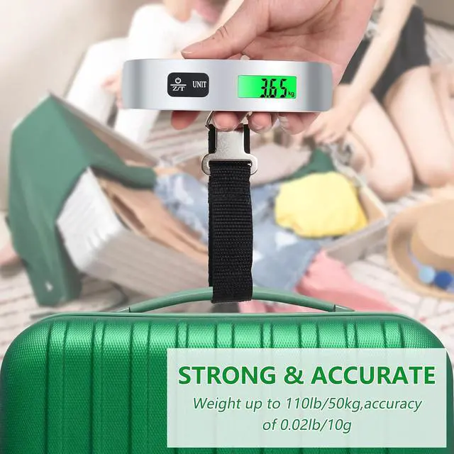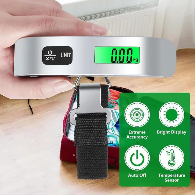 Travel with confidence knowing your luggage weight with this Portable Electronic Luggage Scale. This handy digital hanging scale features a clear backlit LCD display for easy reading, even in low light conditions. With a maximum capacity of 50kg (110 lbs) and a precise tare function, you can accurately weigh your bags before heading to the airport, avoiding unexpected baggage fees. Its compact and lightweight design makes it perfect for travel.