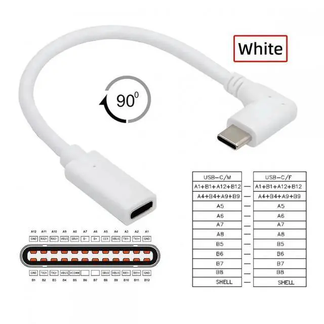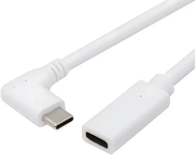White USB-C Type-C Male to Female Extension Power USB 2.0 Data Cable 90 Degree Left Right Angled 65W Fast Charge for Laptop Tablet Phone