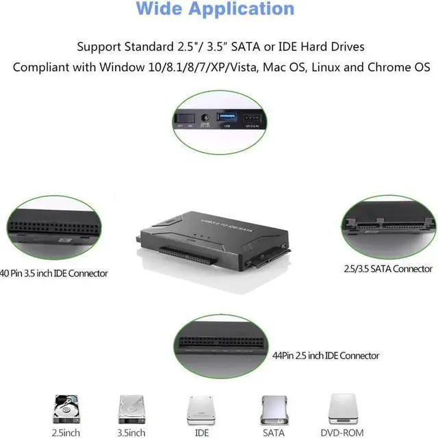 USB 3.0 to Sata/IDE Adapter Converter Hard Driver Adapter for 2.5" / 3.5" SATA HDD/SSD & IDE HDD Converter Power Switch Support
