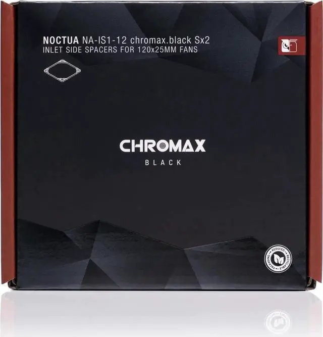 Designed to replace the fans stock NA-AVP1 anti-vibration pads, the NA-IS1-12 are compatible with all current square-frame Noctua 120x25mm fans and extremely straightforward to install: For case fan applications, either the supplied self-tapping screws or the included NA-AV3 anti-vibration mounts can be used to sandwich the spacer between the fan and the case panel. For radiator mounting, both M3 and UNC 6-32 screws are supplied. In sum, the NA-IS1-12 Sx2 set is a simple yet highly effective fine-tuning measure for suction type applications where a reduction of influx turbulence can lead to improved airflow and acoustics. The chromax. black variant is a perfect match for black chromax or industrialPPC line fans.