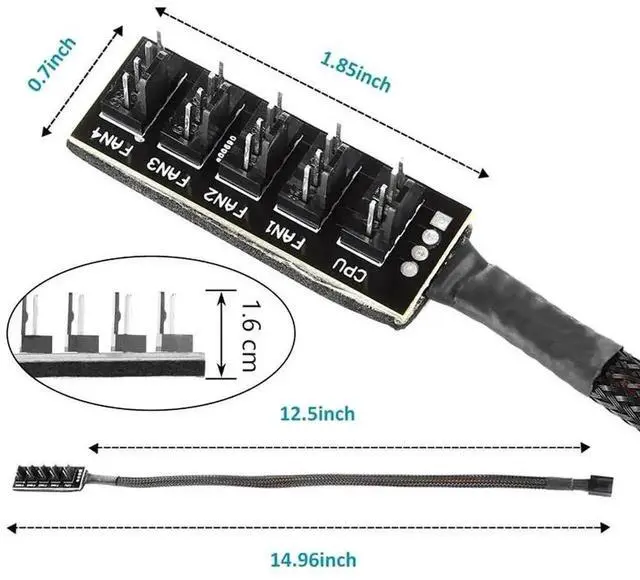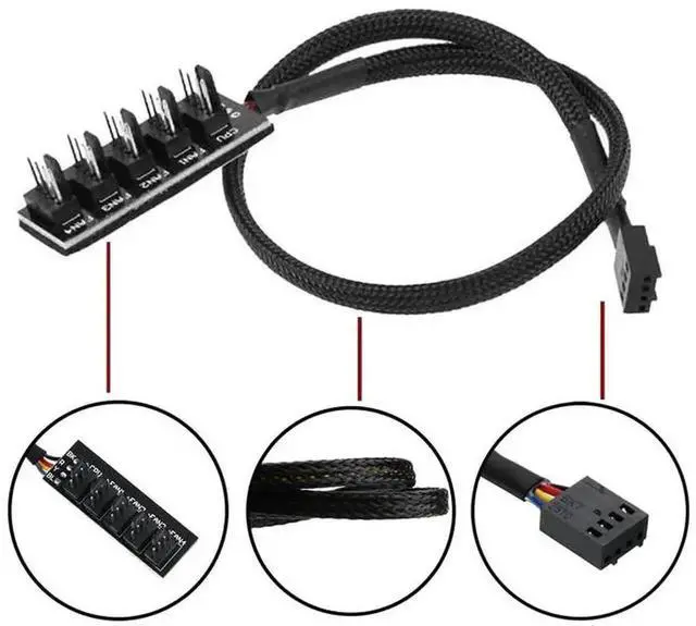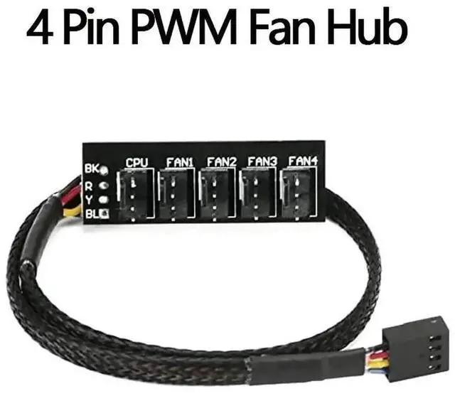 4/3PIN PWM Fan Hub CPU Cooling Fan Power Cable Hub Adapter Sleeved Case Splitter for Computer Cooler Case Fans 1 to 5