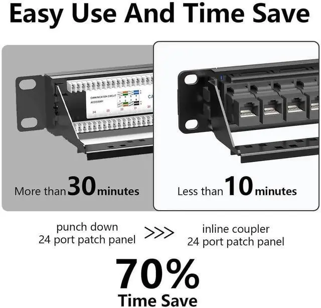 Tool-Free Installation: Preloaded with 24 Cat6 RJ45 keystone couplers, this patch panel requires no punch down tools simply plug cables into the couplers for a quick and hassle-free setup.