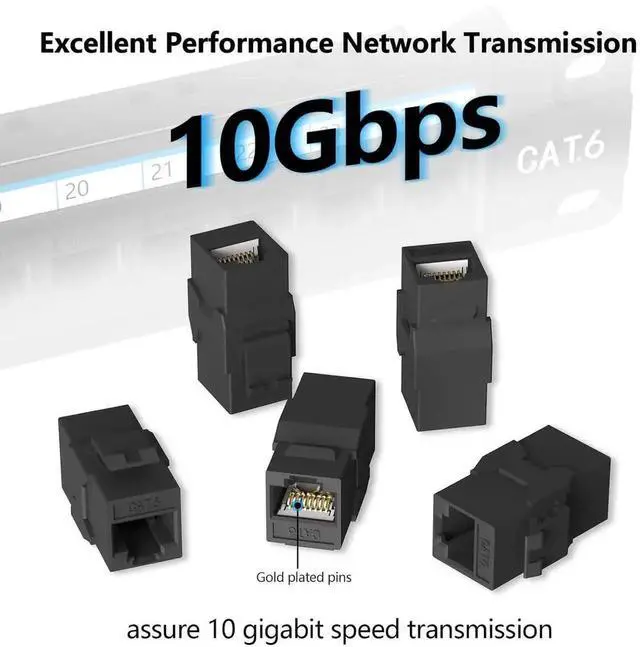High-Speed 10Gbps Support: Supports up to 10Gbps Ethernet speeds, compatible with Cat6, Cat5e, and Cat5 cables. Gold-plated contacts ensure stable and fast data transmission for demanding networks.