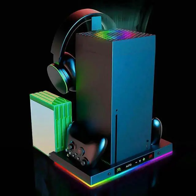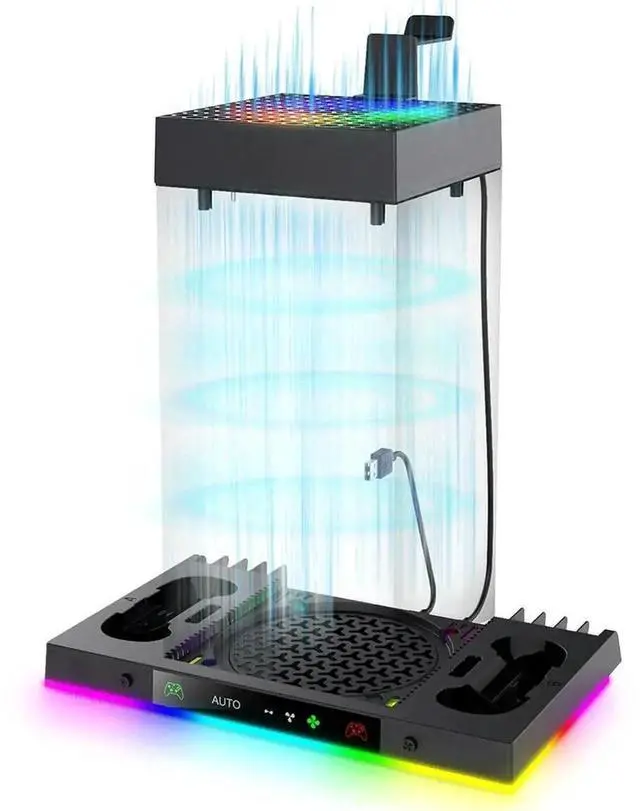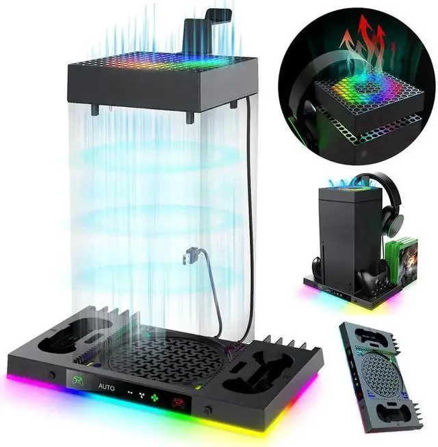RGB Charging Dock with 3-Levels Fan Cooling Fan Base with Game Discs Card Slot Game Controller Handle Charger for Xbox Series X