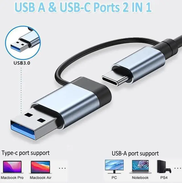 USB Hub Design: This Hub is different from others, the combination of USB-A and USB-C interfaces version is convenient for you connect variety apple macbook pro, mac air, imac, ps4 pro, surface pro, computer, laptops and other devices simultaneously. You have no need to buy another additional usb or usb-c hub, just use this one device, help you to save your time and equipment costs.