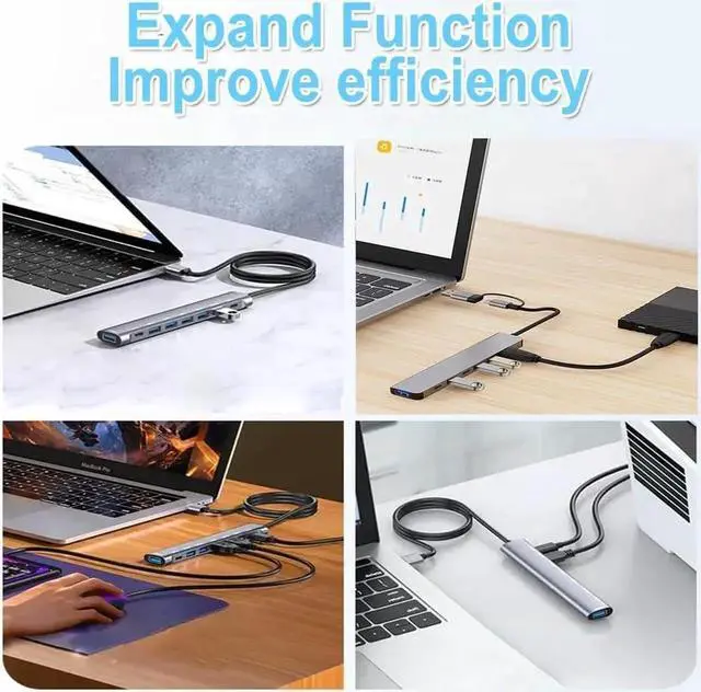 High-Speed Multi-functional Hub for laptop Data Transfer: Equipped with 1 USB 3.0 port, up to 5Gb/s transfer speed, and 4 USB 2.0 ports, can reach to 480bps transfer speed, theremore 2 type-c ports, enables you to quickly transfer large files, photos, and download videos, music, photos and other files in seconds. Enjoy a seamless and efficient workflow.