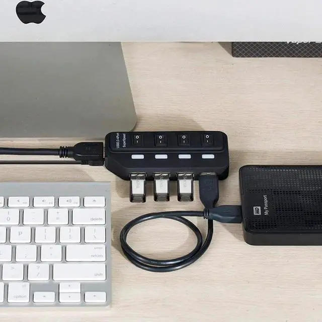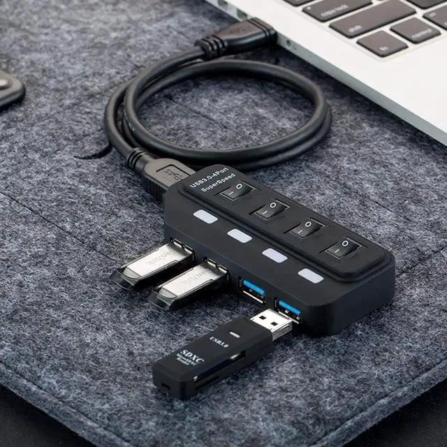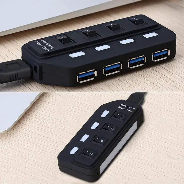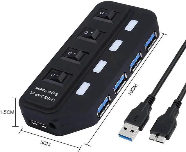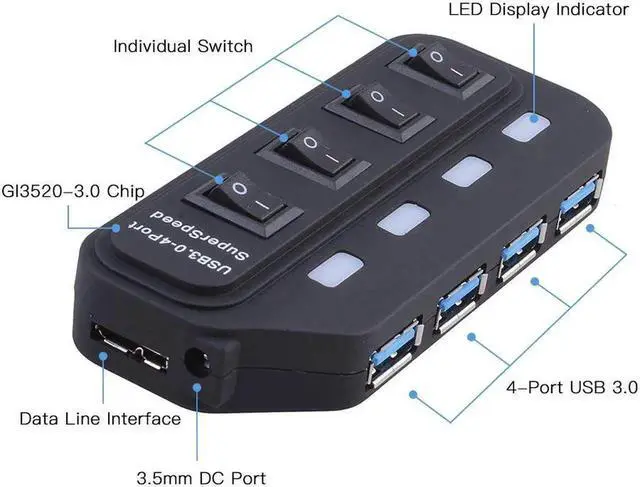 This USB 3.0 hub adds 4 USB 3.0 High-speed ports, includes 4 individual power switches and blue status LEDs, You can turn off the corresponding button if you don't use it.