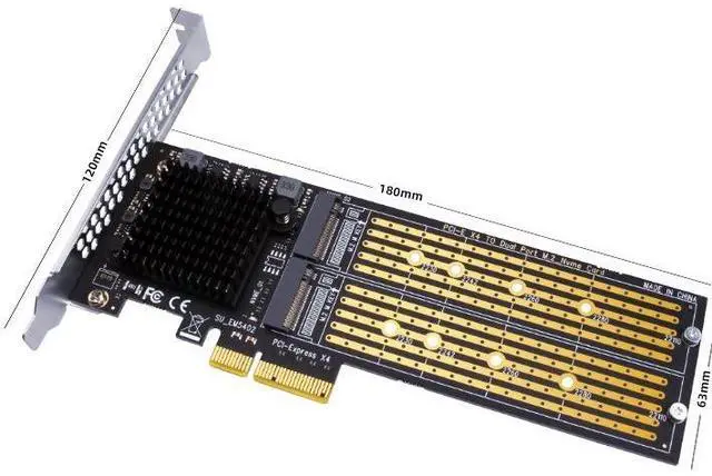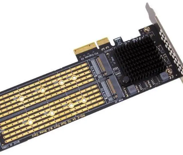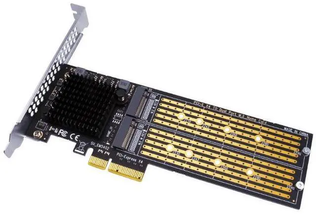 Maximize your system's NVMe storage capacity with this PCIe x4 to Dual M.2 NVMe SSD Adapter. Designed for desktop PCs, workstations, and servers, this expansion card adds two M.2 NVMe SSD slots from a single PCIe x4 slot, providing high-speed storage expansion without the need for motherboard bifurcation support.