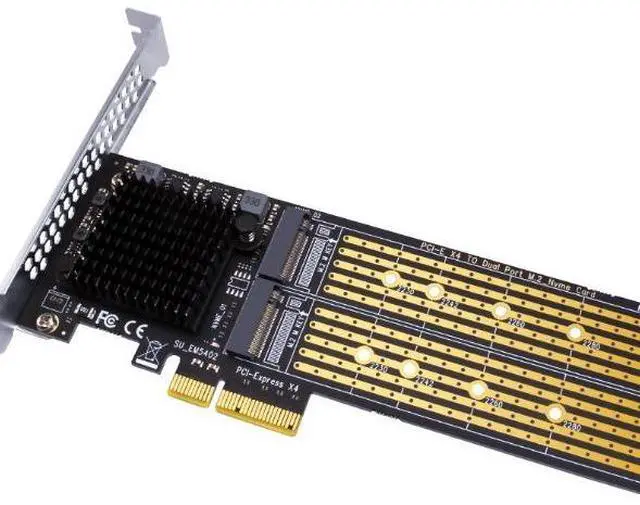 Unlike many multi-M.2 adapters that require complex motherboard BIOS configuration (PCIe bifurcation), this card features an integrated PCIe switch that automatically distributes PCIe lanes to both SSDs. This ensures: