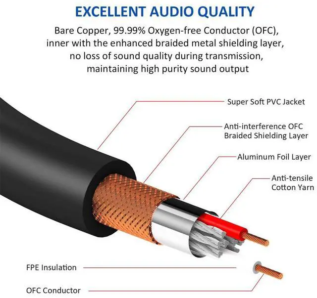 Engineered with 4N (99.99%) oxygen-free copper (OFC) and 20AWG wire gauge, this cable delivers: