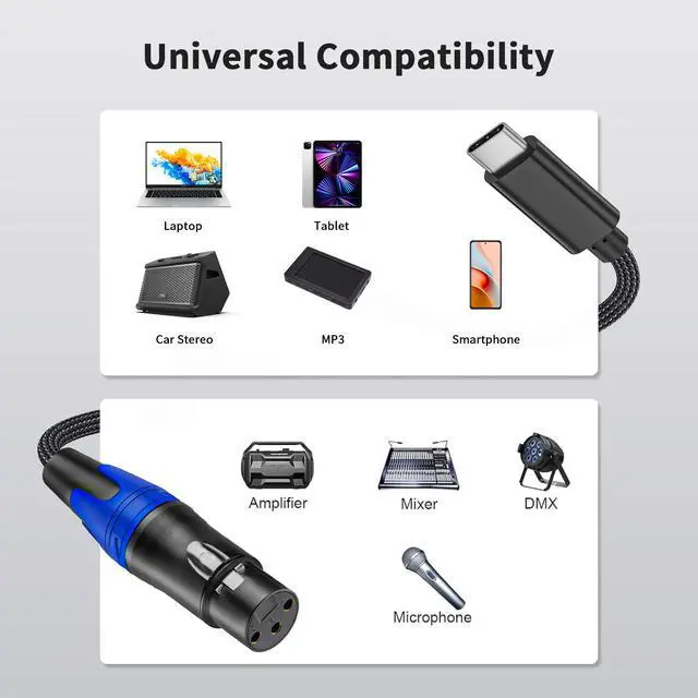 Connect your professional XLR microphones and instruments to modern USB Type-C devices with this USB Type-C to XLR Female Audio Cable. Designed for musicians, podcasters, and content creators, this high-quality cable allows you to directly connect XLR microphones, mixers, or instruments to smartphones, tablets, laptops, and PCsperfect for recording, live streaming, and digital audio production.