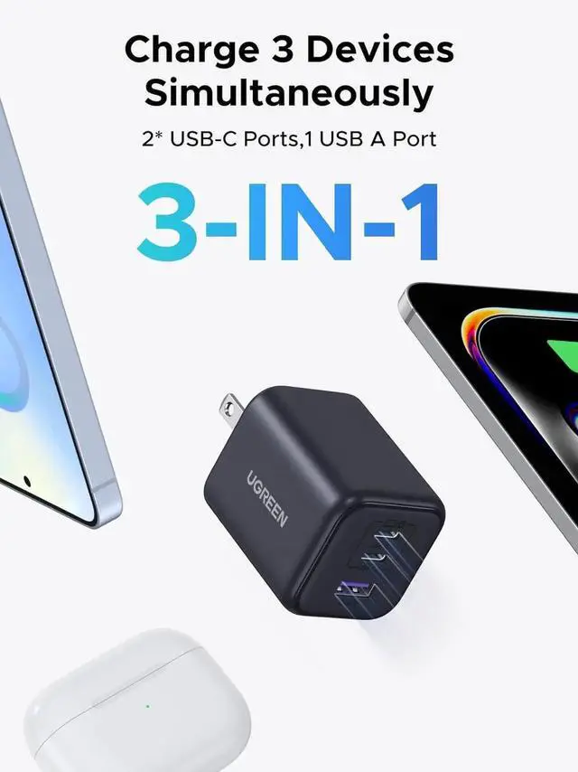 Spend Less, Get MorNo need to spend extra money on extra chargers for other devicesjust one charger does it all. This GaN charger has three ports (2 USB-C, 1 USB-A), so you can charge multiple devices at once, whether its your own gadgets or your familys, all with fast charging.