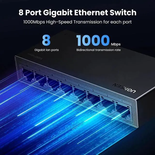 Expand Your Network: UGREEN ethernet switch with 5 Gigabit RJ45 ports has indicator lights, support automatic adjustment to the network speed of 10/100/1000Mbps, support full duplex and half duplex modes, and support automatic MDI/MDIX flip function