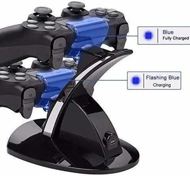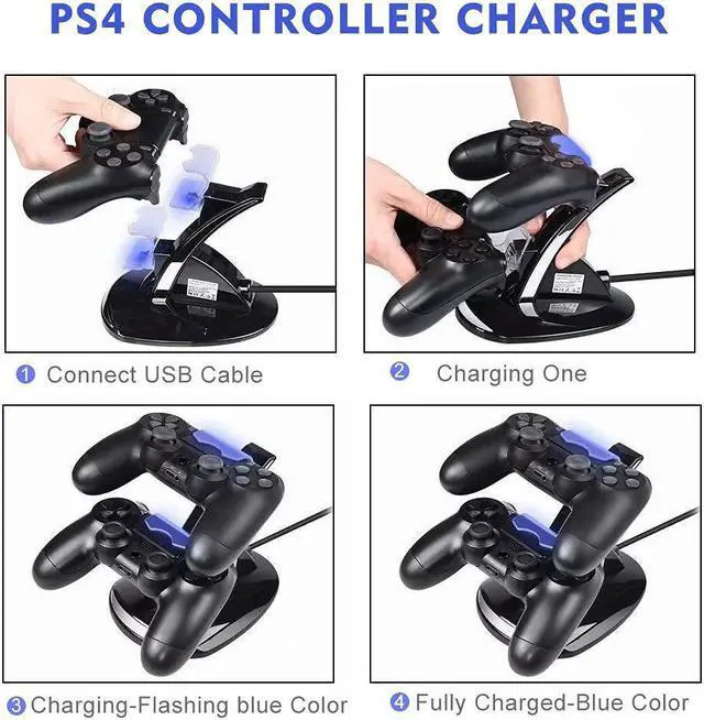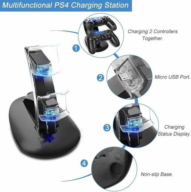 3.Support your gaming experience with this stylish charging system for PS4 controllers; Full charge two controllers simultaneously within 4 hours