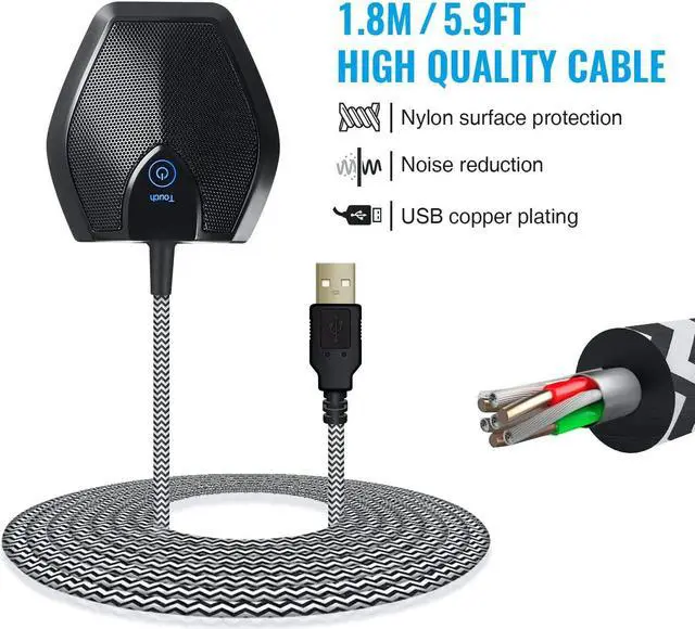 5, bien Conçu Câble, Durable: le microphone est construit de robuste et durable matériau métallique et la base est équipée avec un anti-slip tapis qui maintient stable sur le bureau pendant l'utilisation. Il est petit, pratique et ne pas nécessitent beaucoup d'espace lors de l'utilisation. Connecté avec un 1.8m nylon blindé fil, il élimine efficacement les interférences de signal à atteindre le meilleur enregistrement résultats