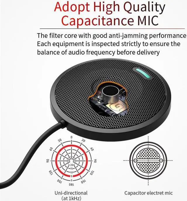 • Haut-parleur de conférence U2, Microphone Portable omnidirectionnel à 360 °, USB, pour ordinateur Portable, PC Portable, Chat vocal, jeu vidéo