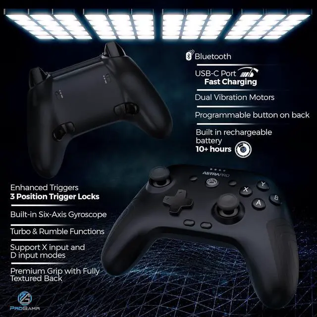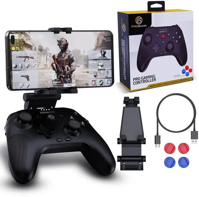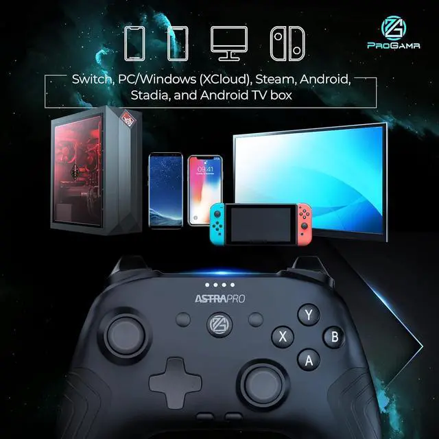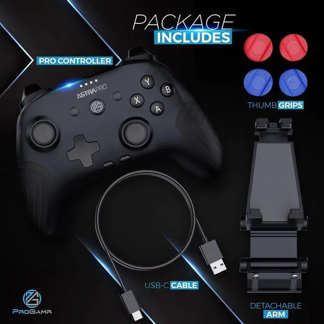 ProGAMR creates and manufactures high-quality controllers that allow gamers to enjoy their favorite games on any device. Our controllers are designed to work with the latest games that require more precision and speed than ever before, making it easy for gamers to experience their favorite titles on the go. The ultimate gaming experience awaits you! The switch game controller offers both wired and wireless connections so you can connect to any platform you desire. The premium quality rechargeable batteries of our Bluetooth controller offer 10+ battery life so that you can play uninterrupted. The controller is expertly designed and produced with meticulous attention to detail. It features enhanced triggers with three-position locks, accurate buttons for precise control, vibration feedback and turbo function for authentic feels, textured back, and rubber grips for maximum palm comfort. The ProGAMR team is committed to staying on top of what's new in mobile gaming so our customers can have the best possible experience no matter what device they're playing on. So don't miss out on this must-have gaming accessory!