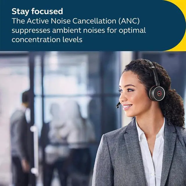 STAY FOCUSED The Active Noise Cancellation (ANC) on these wireless, Bluetooth headphones, suppresses ambient noises for optimal concentration levels. Thanks to the noise-cancelling microphone, you enjoy high-quality calls.