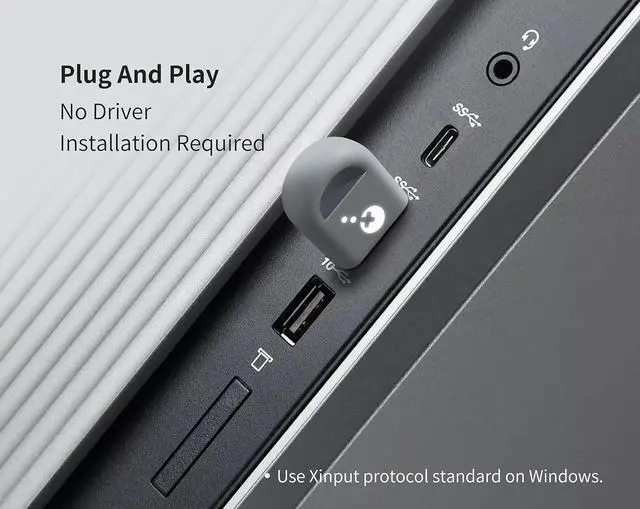 HOW TO USE:1. Turn on the controller and hold the pairing button to enter pairing mode. (For PS4 & PS5 controllers, it is to hold the SHARE and PS logo button until the light flashes quickly to enter the pairing mode. ) 2. Plug the adapter into the USB port, and its indicator will flash rapidly to automatically enter pairing mode. (No button press required) 3. The adapter indicator turns constantly on, and the pairing is successful. NOTE: Please connect in the correct order: first press the power and pairing buttons on the controller, and then insert the adapter into the USB port of PC or consoles.