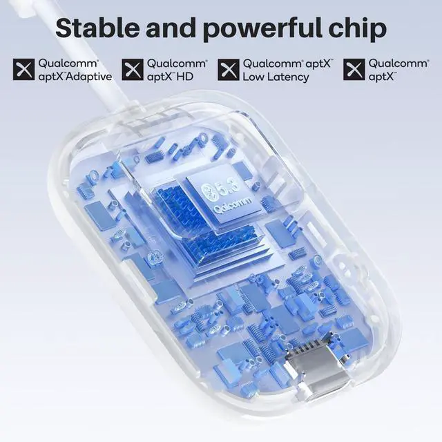 | Special Feature | 3.5mm AUX/dual prong, AptX Adaptive/ Low Latency/ HD, Bluetooth 5.3, 2-in-1 Bluetooth transmitter receiver, OLED display screen/volume button, built-in rechargeable battery |