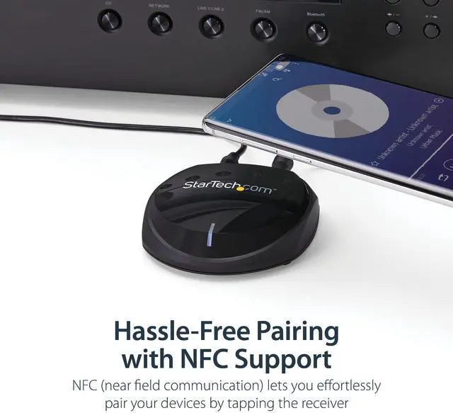 With Near Field Communication (NFC), simply tap your NFC-equipped devices to the aux receiver to instantly pair and start streaming audio, with no additional configuration required.