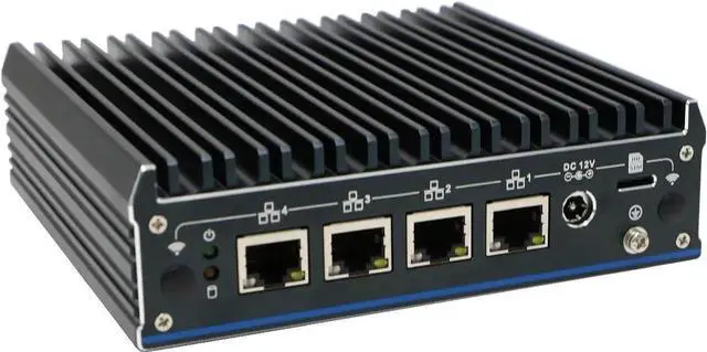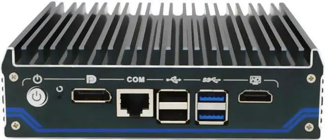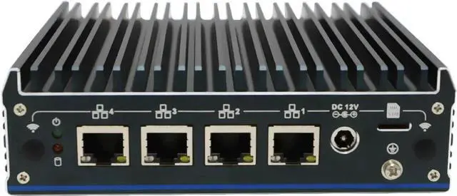 I/O Interface: Power switch, DP, RJ45 COM (Support Console function), 2 x USB 2.0, 2 x USB 3.1, 1 x HDMI, 1 x Restart button, 4 x RJ45 LAN, DC IN, 1 x SIM card slot