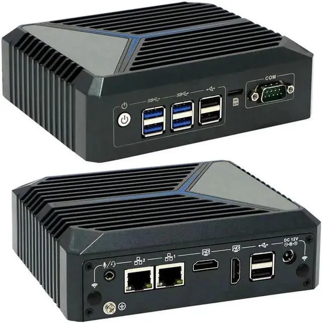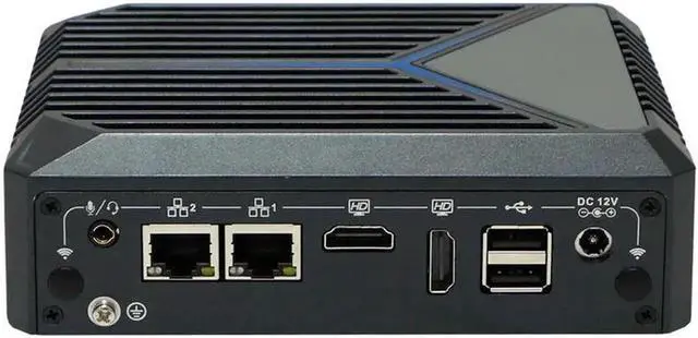 Rear I/O: 1*DC, 2*USB2.0, 2*HD, 2*RJ45 LAN, 1*Audio (Support Mic and Speaker at the same time)