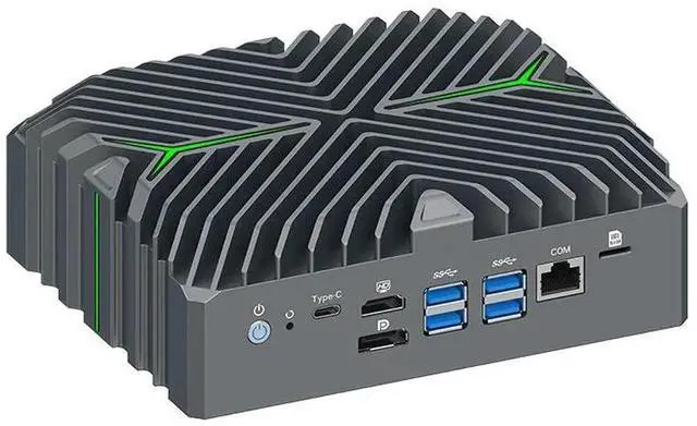 Front I/O: 1 x Power Button, 1 Reset, 1 x Type-C (support DP/USB 3.2 /PD 5V1A), 1 x HD, 1 x DP, 4 x USB 3.2, 1 x RJ45 COM (suppor Console), 1 x SIM Card Slot