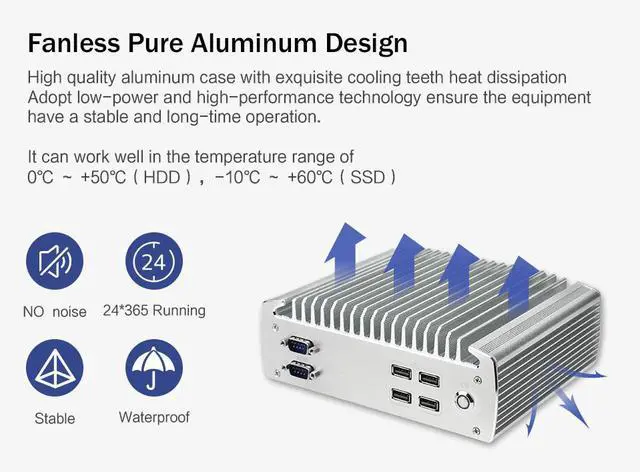 Fanless Industrial Mini PC Intel Celeron J1900 Quad Core Dual Lan Linux/Windows Micro Computer Support RS232 RS485 COM HD-MI 4G RAM 64G SSD