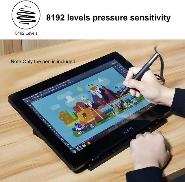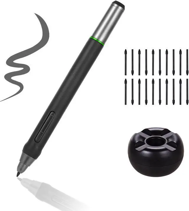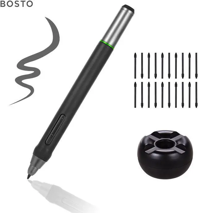 Features: 8192 level pressure induction drawing pen, 8ms fast report rate, max. 15mm sensing height. Makes your drawing lines smoother and gives you a natural feeling when you drawing. Adopts battery-free technology, you don' t need to charge it, convenient to use. With 2 custom function buttons for making your drawing more conveniently. Suitable for BT-16HDT/BT-16HDK/BT-16HD/BT-22U MINI/BT-22UX Graphics Drawing Tablet. Comes with 20pcs pen nips and 1 pen holder.