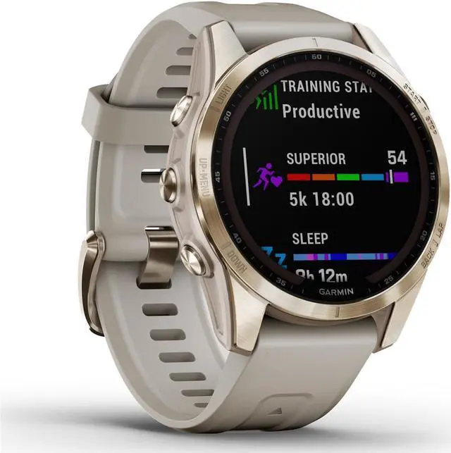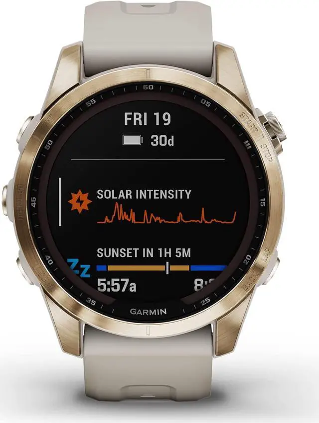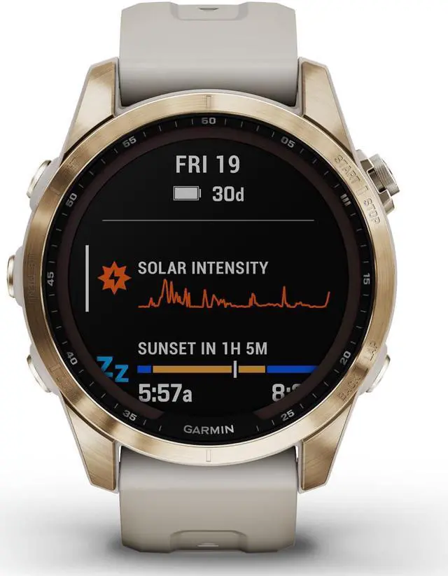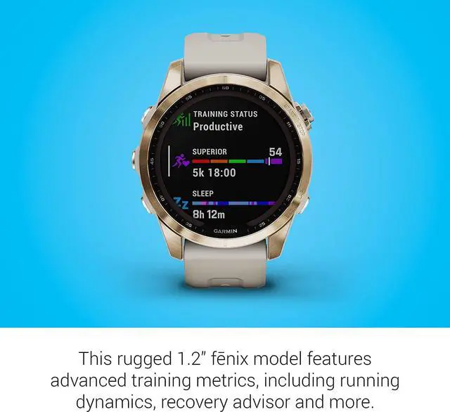 Meet any athletic or outdoor challenge with the rugged fnix 7S Sapphire Solar multisport GPS watch. Its styled for smaller-sized wrists, and its scratch-resistant Power Sapphire solar charging lens uses the suns energy to extend battery life powering advanced training features, sports apps, health and wellness monitoring sensors and more.