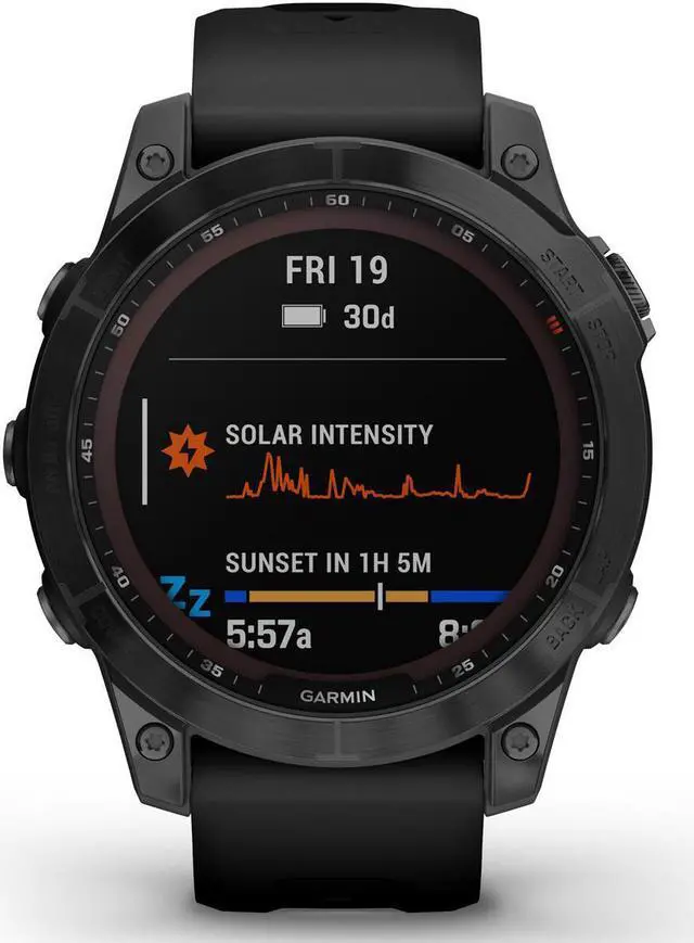 Meet any athletic or outdoor challenge with the rugged fnix 7 Sapphire Solar multisport GPS watch. Its scratch-resistant Power Sapphire™ solar charging lens uses the sun’ s energy to extend battery life — powering advanced training features, sports apps, health and wellness monitoring sensors and more.