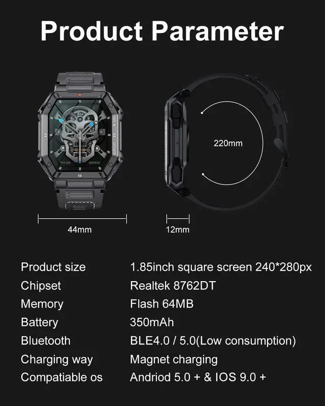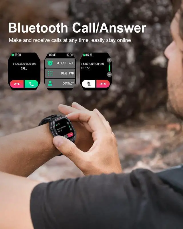 Rugged Smartwatch & 5ATM Waterproof - smartwatch which is drop and wear resistant, rugged and durable. With the special appearance design, wearing it is undoubtedly the best match and choice when you are playing/exploring/climbing outdoors. After rigorous testing, this outdoor sports smart watch has a water resistance rating of 5ATM. Can meet your daily waterproof requirements, which make you not fear water when sweating, hand washing or rain splashing, etc.