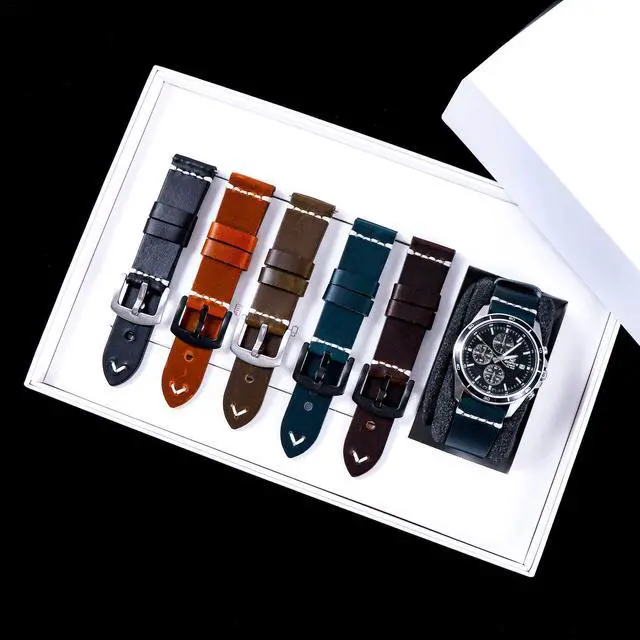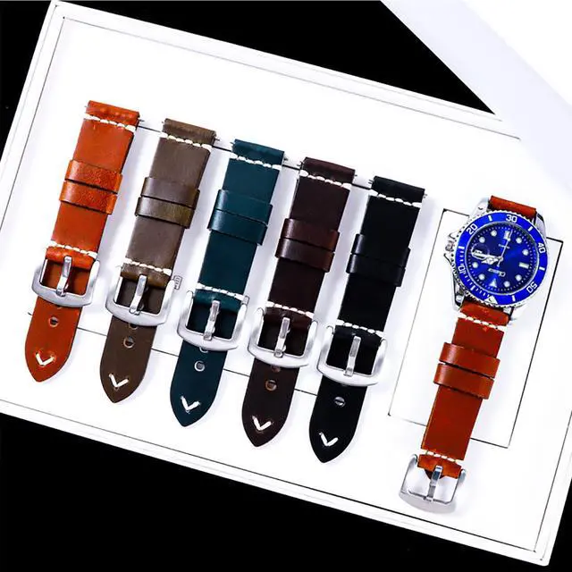 Great Vintage Tone Look Solid Leather Watch Strap- It is Soft and durable the perfect thin thickness and compliments your watch. The texture of the leather is great too, where you bend the strap the color will turn a bit lighter which perfectly matches my watch.