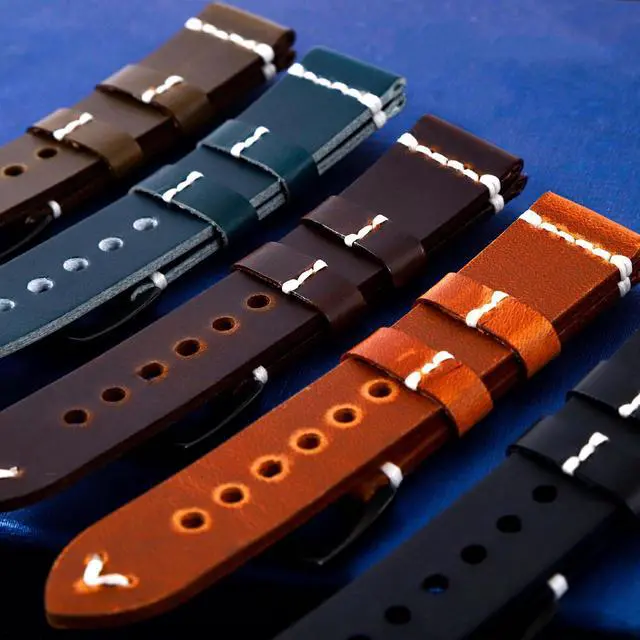 Beautiful Horween Leather and Skillfully Made Watch Strap- Horween Genuine, more than just a color, it is a very specific leather, from a particular part of a horsehide. It's beefy, thick, and supple, better for daily wear and sports watches. Heavy duty leather watch band, a bit stiff at first but softens up nicely after a short time. and, the leather smell is gorgeous as is the finishing.