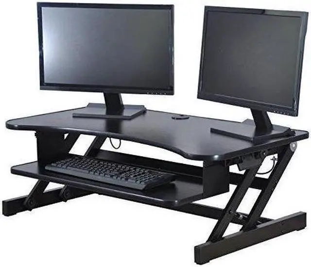 The Rocelco DADR-46 Height Adjustable Sit Stand Desk Riser and Standing Desk Converter has a EVR (Enhanced Vertical Range) which rises up to 20” and lowers down to 5”, to optimize the ergonomic work position for people of all heights.