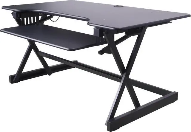 Transform your workspace into a functional sit down or stand up desk-space with the Rocelco Deluxe Adjustable Desk Riser. The Rocelco DADRB-40-ACUSB (Adjustable Desk Riser with 4 AC + 2USB & 1 USB-C outlets) is one of the premium desk risers in the office furniture category. The DADR-40-ACUSB optimizes the use of office space with the convenience of connectivity. It is ready to use out of the box, no assembly required. It raises to 20.6 inches and lowers to 5 inches to ensure the best ergonomic work position for people of all heights. The 40 inch wide desktop can hold up to 2 large monitors, a laptop and more.